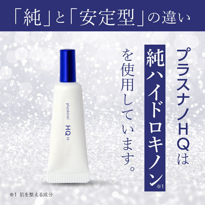 ※1!プラスキレイのプラスナノHQクリームは、 話題の純ハイドロキノンを4%配合したポイント集中ケア用のクリームです。