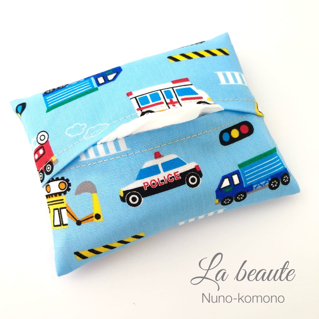 ポケットティッシュケース 普通サイズ はたらく車水色 子供 子ども 子供用 男の子 かわいい ポケットティッシュカバー サイズ