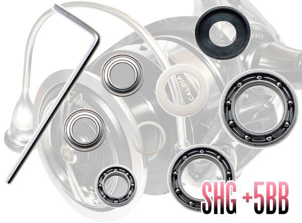 ・スプール内蔵用BB×1個 (SHG-1170) ・ローラーワッシャー×1個 ・ローラーカラー×1個 ・ローラーパッキン×1個 ・スプールシャフト専用 六角レンチ×1個 ・チューニング説明書 ※こちらのキットでベアリングを5個追加し、MAX11BBフルベアリングチューニングをする事が可能です。