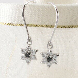 【P5倍】ブラックダイヤモンド フックピアス 10k レディース ダイヤモンド スター 星 フラワー 花 0.2カラット セブンスター 10金 k10 ゴールド【送料無料】