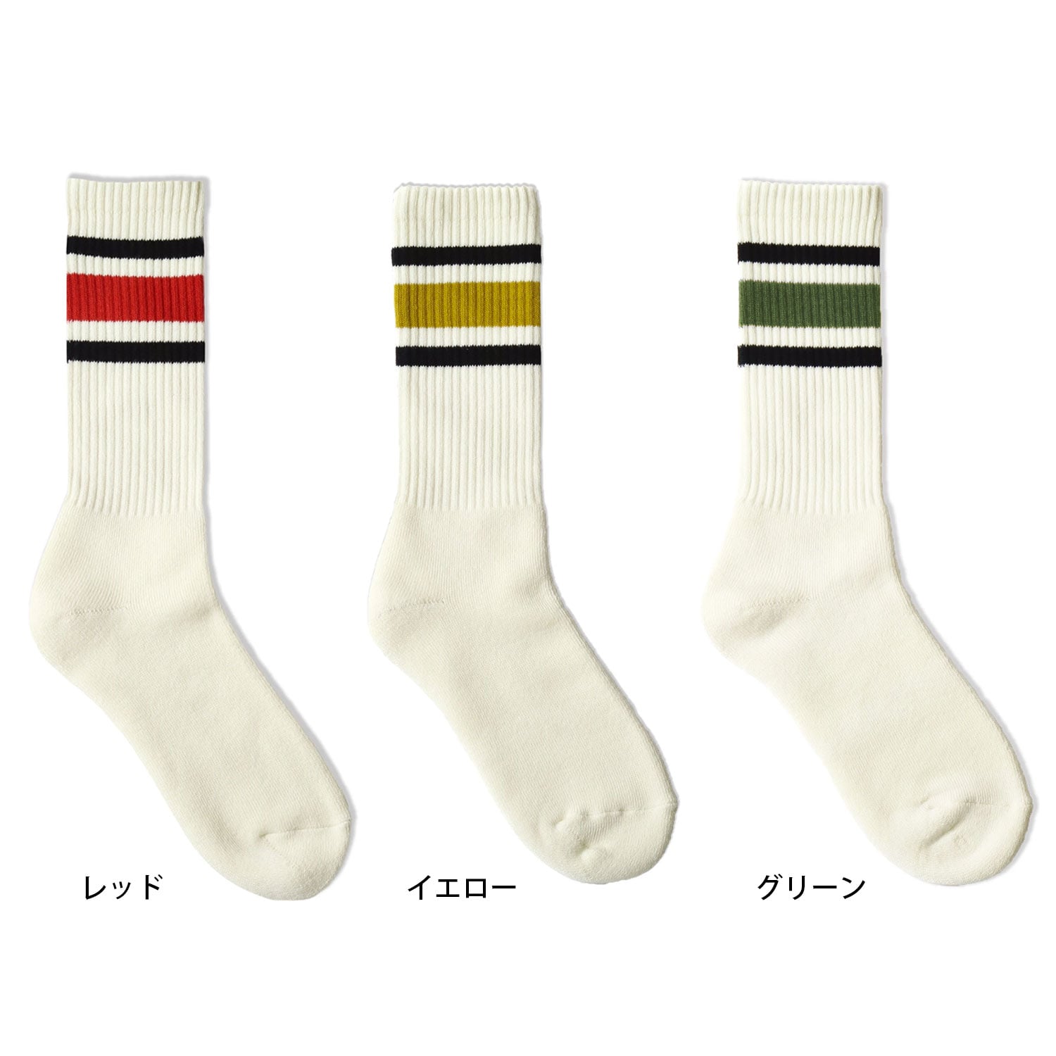 お買い物ガイド スケボーが一つのカルチャーとして成熟した80年代に普及したミドル丈の靴下をモデルに作られたdecka(デカ)のスケーターソックスです。