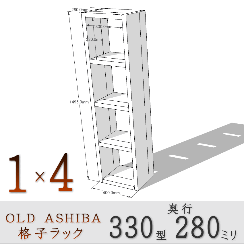 トップページ > OLD ASHIBA 格子ラック > 330型奥行280mm 1×4 その他のサイズ・商品の詳細はコチラ 【ラック オープンラック 本棚 シェルフ 木製 古材 足場板 ボックス キューブ】OLD ASHIBA格子ラック商品説明格子型の、とってもシンプルな形状のラック。