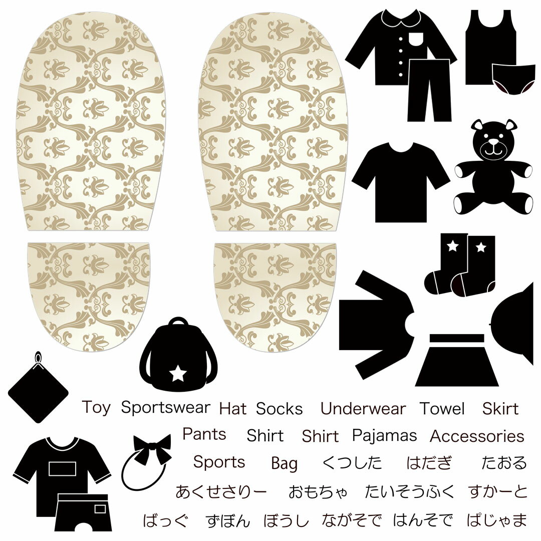 デザイン靴置きステッカー くつおき マーク くつ 収納 シール ステッカー 整理整頓 ウォールステッカー ラベルシール 収納 子育て おかたづけ 子供用 幼児用 玄関 30×30cm 012184 ダマスク柄 北欧 柄