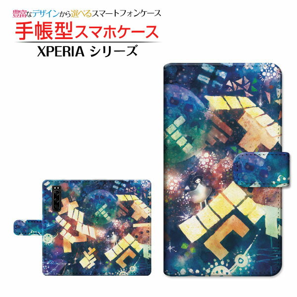 液晶保護ガラスフィルム付 XPERIA 5 III [SO-53B SOG05 SoftBank] 対応 手帳型 スマホケース カメラ穴対応 ぴかぴかてとりす F:chocalo SONY ソニー 定形・定形外郵便 送料無料 イラスト 池田 優 テトリス 宇宙 [ メンズ レディース おしゃれ かわいい ]