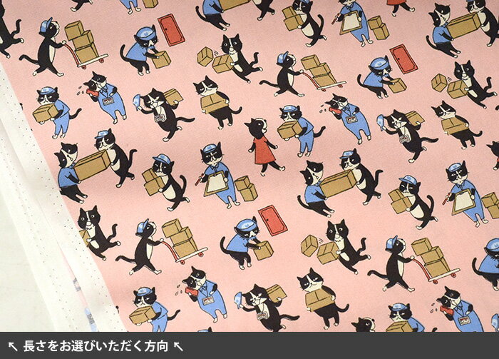 ネコのお届け屋さん(オックス)猫さんがお荷物を運んでいる柄Trefle KOKKA【生地・布】YKA-91030-1 数量3(30cm)から10cm単位 3888