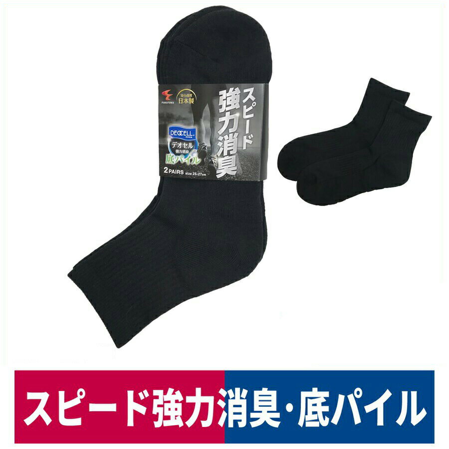 靴下 先丸 強力消臭 デオセルミドル 底パイル 2足組 肌に優しい L 黒 福徳産業 4170-2P