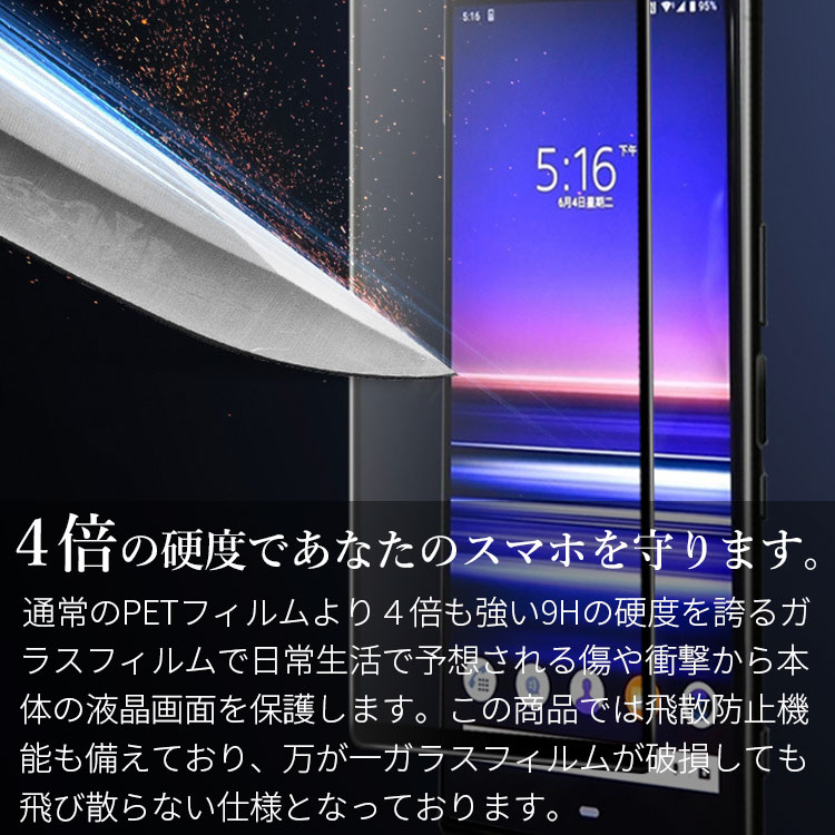 通常とは比較にならない強度 フィルムの中央、透明部分は9Hの硬度を誇る強度のガラスフィルムを使用しています。