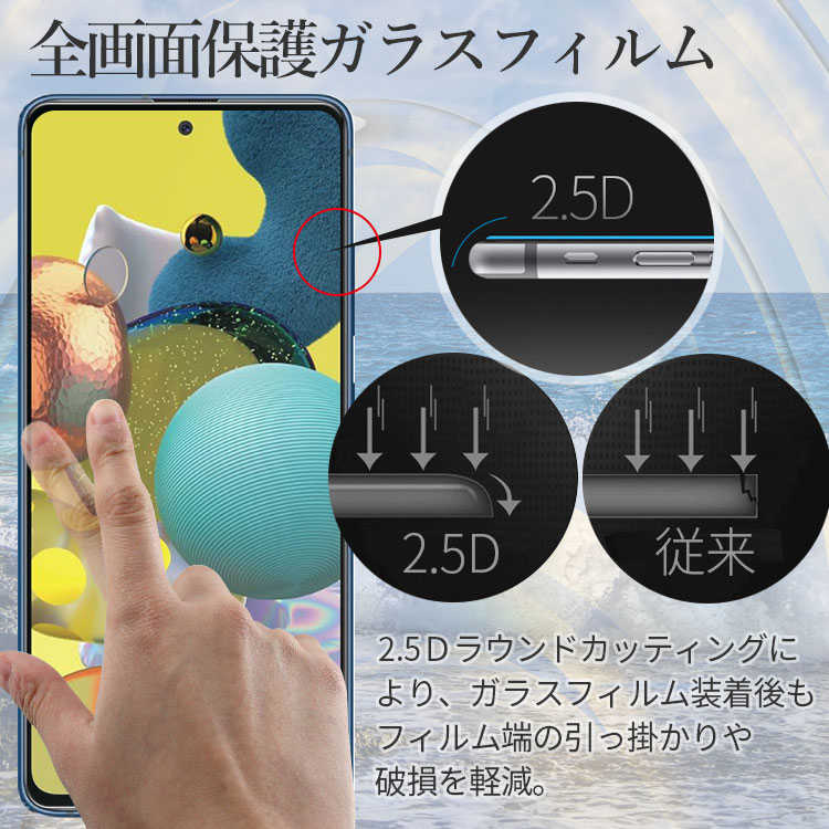 Galaxy A51 5G フィルム 強化 ガラス フィルム 画面 液晶 保護フィルム ラウンドエッジ 飛散防止 薄い 硬い SC-54A SCG07 ギャラクシーA51 サムスン