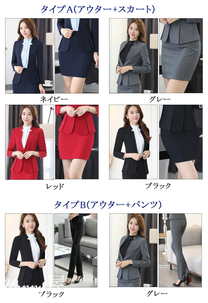 商品詳細 ■タイプ:タイプA(トップス+スカート) タイプB(トップス+パンツ) ■カラー:タイプA(ブラック グレー レッド ネイビー) タイプB(ブラック グレー) ■サイズ(cm):S-5XL ■素材:ポリエステル ※記載のないアクセサリー、小物等は付属しません。