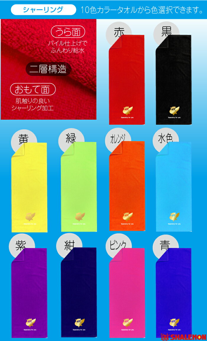 当店“シャレもん”オリジナルデザイン! お世話になっている人に、ちょっとしたワンポイントデザインのタオルはいかがですか? デザインの下のメッセージは5種類からお好きな言葉を選べます。