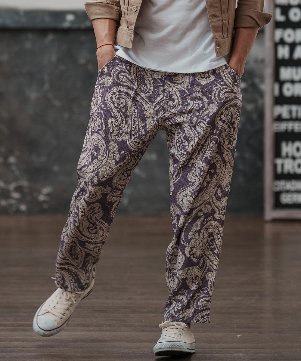 BAMBOO SHOOTS/バンブーシュートPATTERNED ORIGINAL ROKX PANTS / パターンド オリジナル ロックス パンツ エスニック 柄 テーパード イージーパンツ ウエスト調節 フェス キャンプ アウトドアブランド グレー