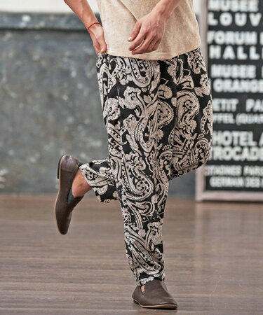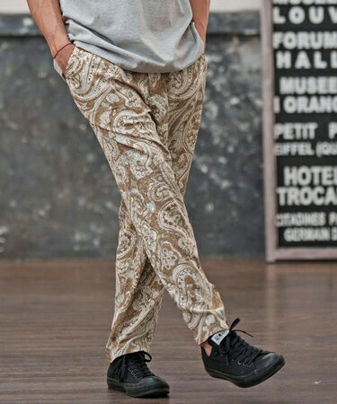 大柄のペイズリー柄生地を使用したテーパードパンツ。