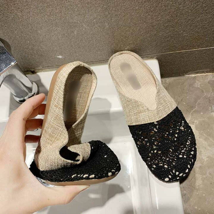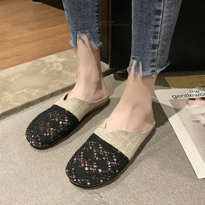 フラットサンダル ルームシューズ レディース 送料無料 ペタンコサンダル ウェッジソール スリッパ エスニック 切り替え レース 編み 軽量 メッシュ 春夏秋 ミュール 室内スリッパ 室内履き オフィススリッパ