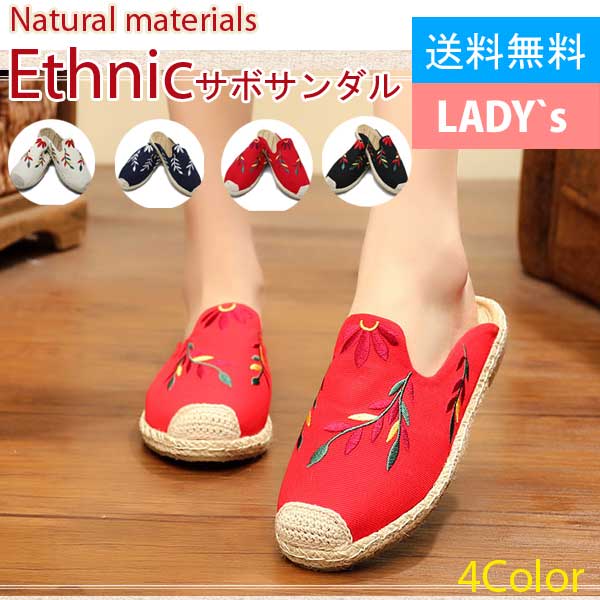 サボサンダル レディース 外履きOK サンダル ナチュラル ヘンプ 手編み アジアン 刺繍 エスニック SANDAL アジアンテイスト サボ
